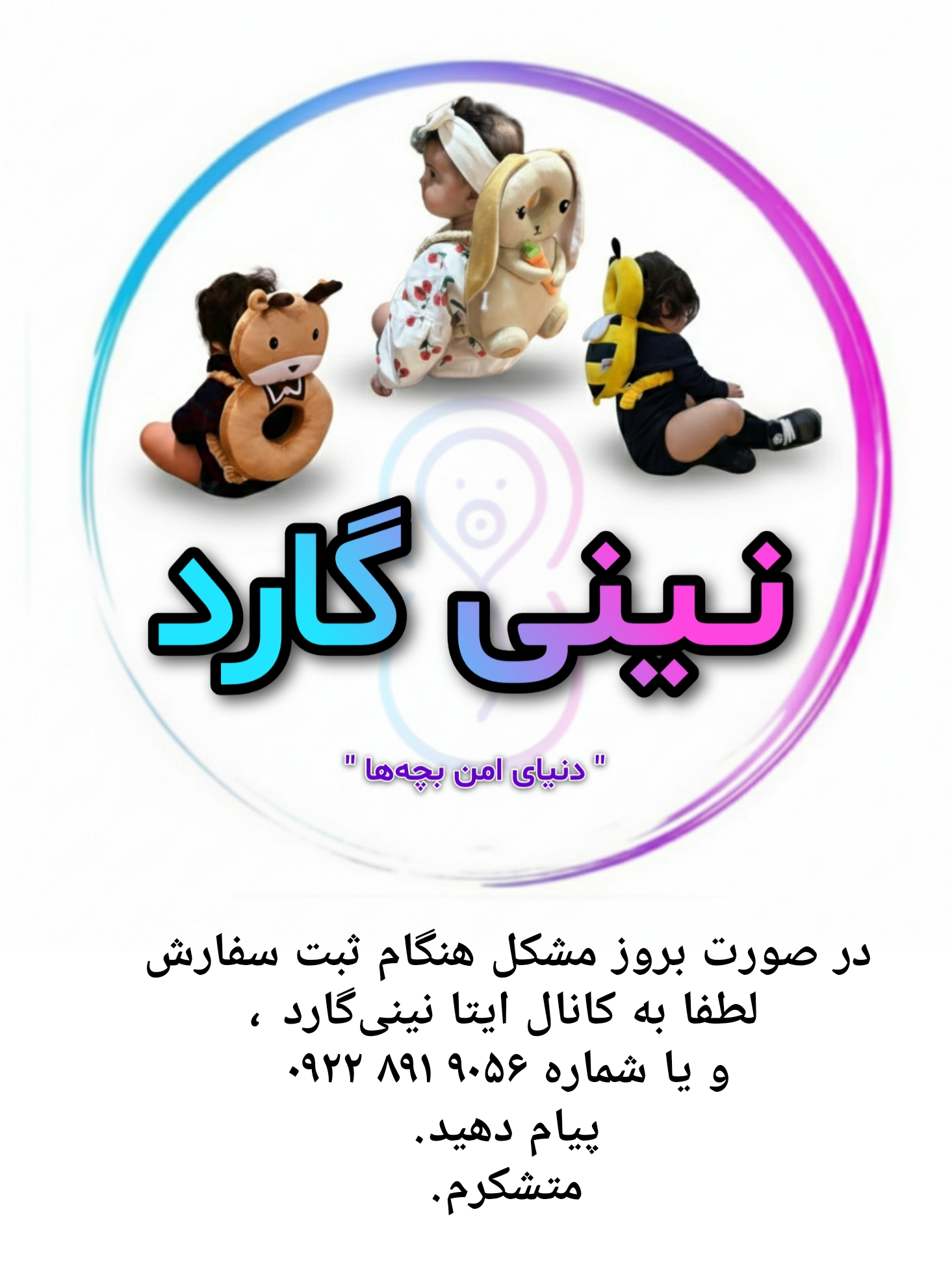ست اقتصادی کلاه و کوله محافظ سر کودک نینی گارد مدل پروانه