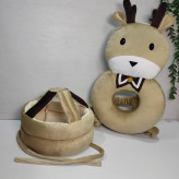 ستِ اقتصادی کلاه و محافظسر مدل گوزن . در کلاه محافظ سر، جنس قسمت داخلی کتاننخ ترک و قسمت بیرونی با کوله ست شده قسمت داخلی کلاه بین40تا54سانت متغیر هست قسمت پشت کلاه چسبک داره و شما میتونین متناسب با سایز کودک تنظیم کنین . کوله محافظ سر وزن حدودا 180تا200 گرم بندها کشی هستند و علاوه بر این با سگک متناسب با سایز کودک تنظیم میشن