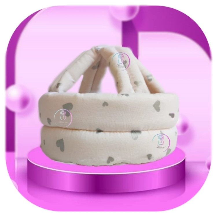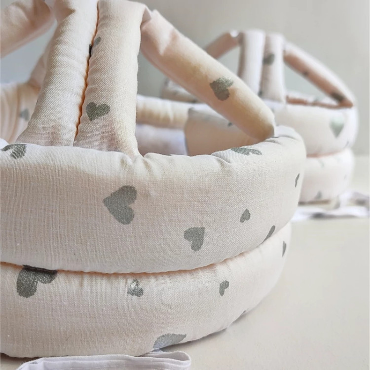 کلاه محافظ سر نوزاد نینی گارد، طرح قلب، جنس کتان نخ ترک ،100 درصدکتان نخ